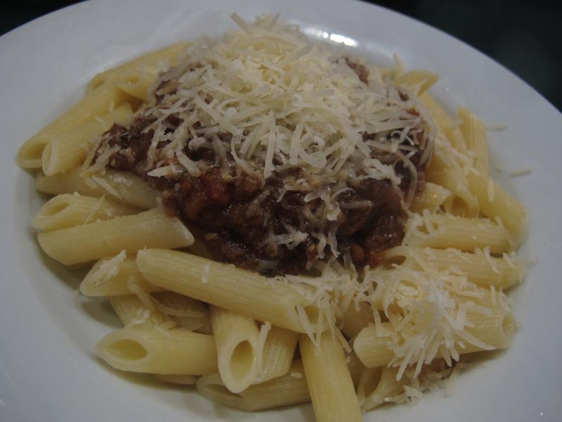 Hier gab es den Rest des gestrigen Rehragouts (mit Rest von Tomatensugo aus dem Glas, Rosmarin und frischer Butter) auf Rigatoni, dazu Chicoreeradicciovogerlsalat. Das war erstaunlich gut :)