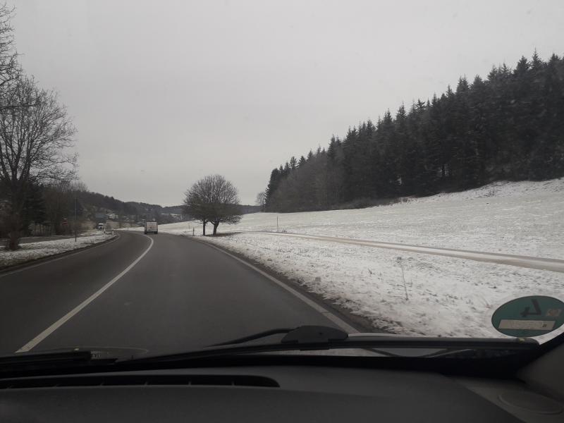 Zuhause war es am Morgen nur saukalt, jetzt regnets gerade und ist grau. Bei einer kurzen Fahrt auf die Alb, sah es heute Vormittag für ein Stück so aus. Crambe wird das Eck kennen...