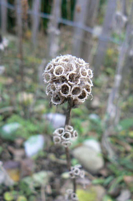 so, fertig. Ich hatte und habe wieder die Vernonia arkansana Syn. crinita, die identisch ist mit der 'Rock Hill', die Kirschenlohr verkauft. Meine erste habe ich wahrscheinlich 2006 von der Staudengärtnerei als Vernonia crinita, andere gab es damals noch nicht. Vernonia arkansana Syn. crinita habe ich 2014 noch mal dort gekauft. Die Samenstände sahen am 3. Dezember 2009 aus wie folgt: