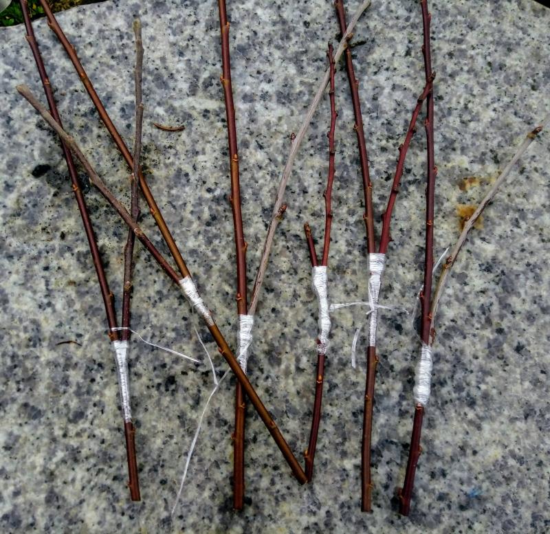 Ich habe zwei Arten von Weiden (Salweide und irgendwas anderes) mit diversen Obstreiser kombiniert (Quitte, Apfel, Kirsche und Pflaume).