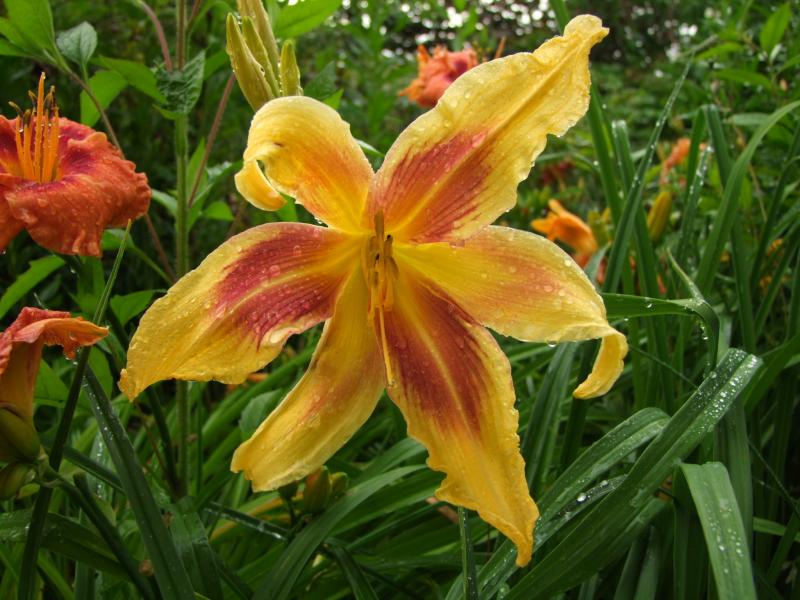 Auch für mich ist eine auf der Wiese im BoGa Berlin-Dahlem gekaufte Taglilie mit Offenthal verknüpft, "Cat's Dancer". Sie hat zwar die ersten zwei Sommer im Topf nicht blühen wollen, war dann aber für neue Erde dankbar und brachte diesen Sommer sehr hübsche Blüten.