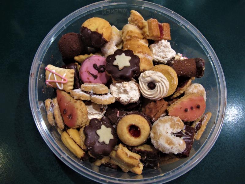 Gestern kamen hier Weihnachtskekse aus dem Waldviertel an :D Dort wird den ganzen Dezember über in den Bauernhäusern gebacken, man überbietet sich in der Anzahl der verschiedenen kleinen Kunstwerke - denn um solche handelt es sich: Das Bild täuscht, ihr Durchmesser beträgt 2-3 Zentimeter, also Miniaturen. (Übrigens sind auch meine obigen Marzipankugerl in Wirklichkeit viel kleiner.) Ich hingegen hab noch vegane Vanillekipferl und Kekse mit Kokosblütenzucker gebacken - von den jugendlichen Familienmitgliedern dazu veranlaßt :-\ Da greift man gern zwischendurch zu traditionellem Backwerk 8)