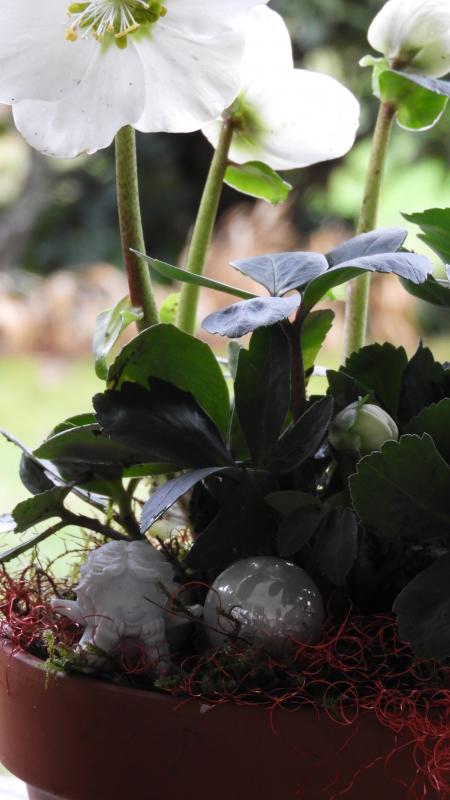 Last-minute-Eintopfung zweier Tischschmuck-Christrosen. (In der Hoffnung, dass die den kurzzeitigen Aufenthalt im warmen Haus vertragen.) Erholsame Festtage! ;)