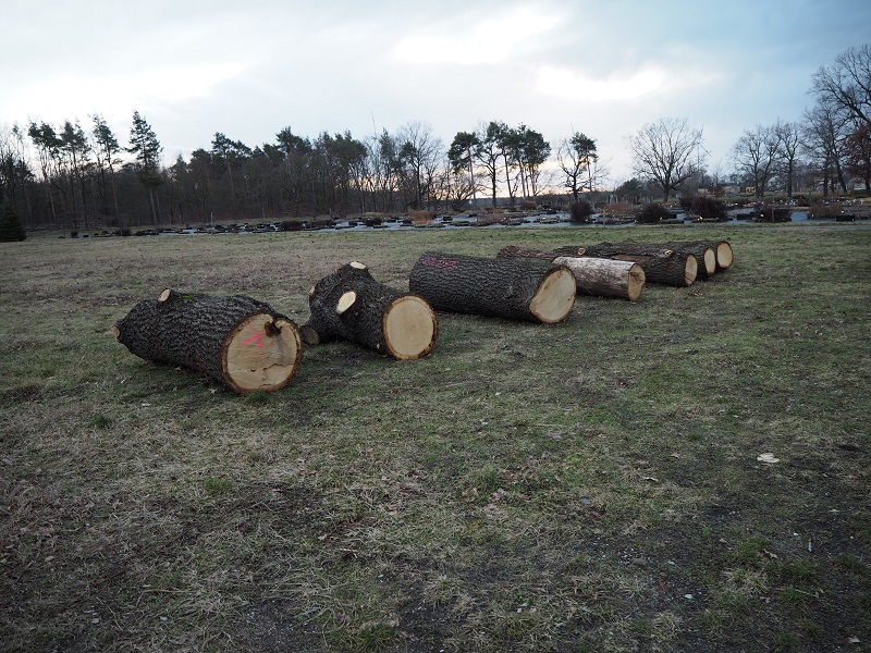 Aufpassen bei dem rechten Stamm. Die dunkle Stelle auf der Schnittfläche könnte von einem eingewachsenen metallischen Gegenstand kommen (Nagel, Geschoss oder Granatsplitter).