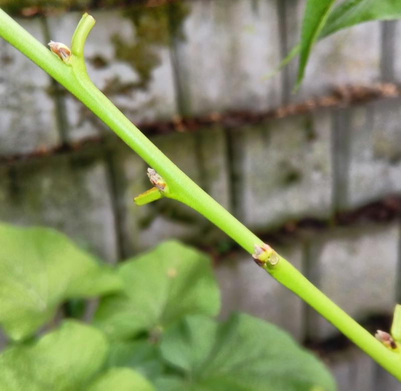 Hier ein kleines Makro. Hier kann man auch den Grund erahnen, weshalb ich den Ast dennoch wieder anveredelt habe. Er scheint gut Blütenknospen angesetzt zu haben. Ich will auch den Ast im nächsten Jahr nur blühen lassen. Früchte möchte ich, wenn überhaupt, an den anderen Ästen reifen lassen.
