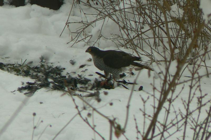 Der Sperber hat hier mal in aller Seelenruhe eine Amsel gerupft. Erst hat er gewartet bis sie tot war