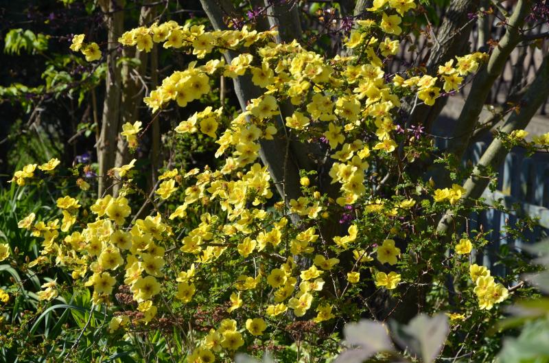 Die erste Rose, die hier blüht, ist 'Helen Knight'.