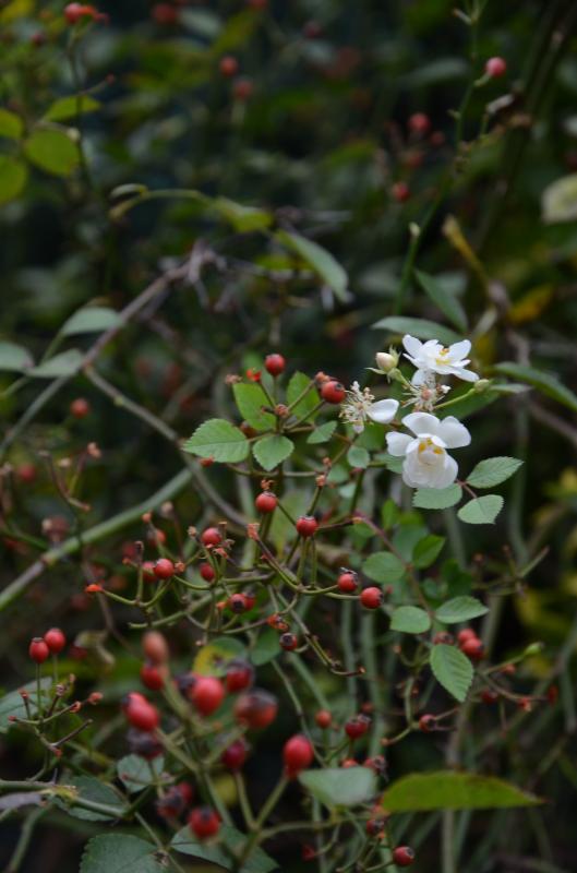 Sehr gerne mag ich auch Rosa multiflora 'Nana', sie erfreut auch mit hübschen kleinen Hagebutten, in manchen Jahren beides gleichzeitig!