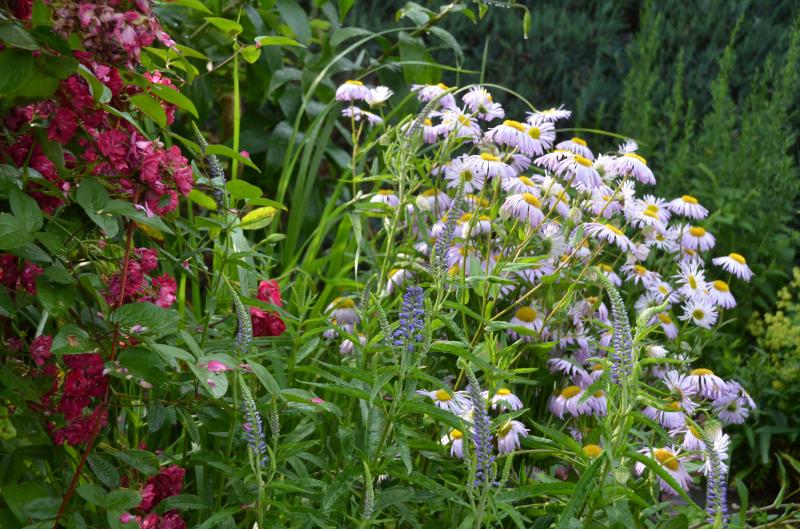 'Rosemary Harkness' mit Salvia 'Caradonna' und Erigeron 'Dominator'