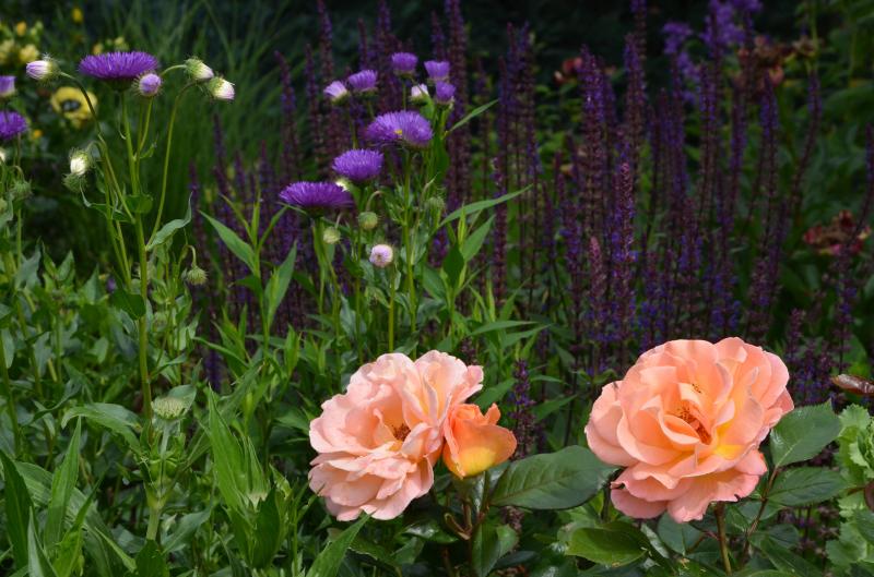 'Rosemary Harkness' mit Salvia 'Caradonna' und Erigeron 'Dominator'