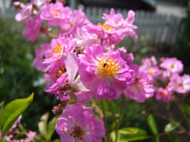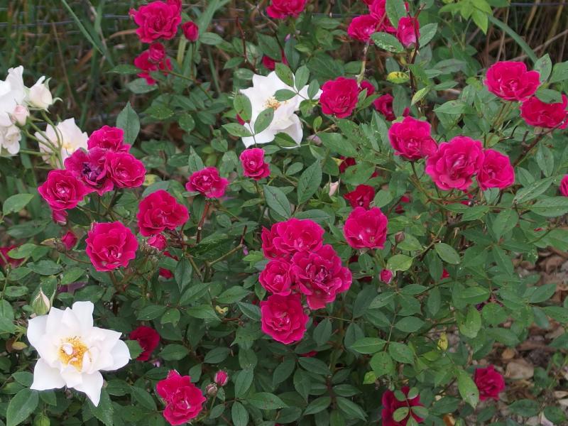 Sehr gerne mag ich auch Rosa multiflora 'Nana', sie erfreut auch mit hübschen kleinen Hagebutten, in manchen Jahren beides gleichzeitig!