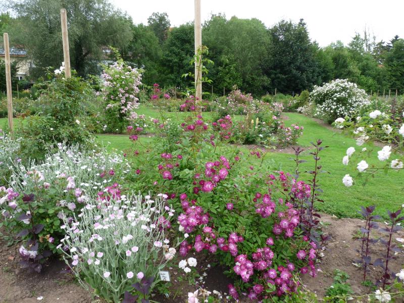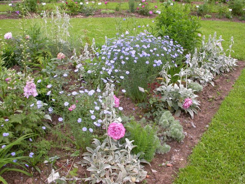 Blaue und violette Campanula und Salvien zu Rosen gehen auch immer, finde ich.