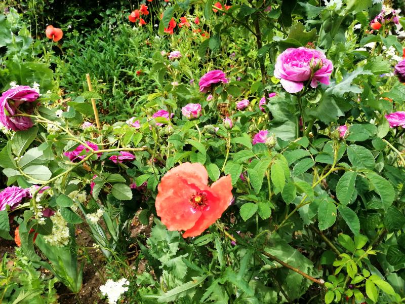 Während Guirlande d'Amour kaum zu bändigen ist, hier hinter dem Mohn.