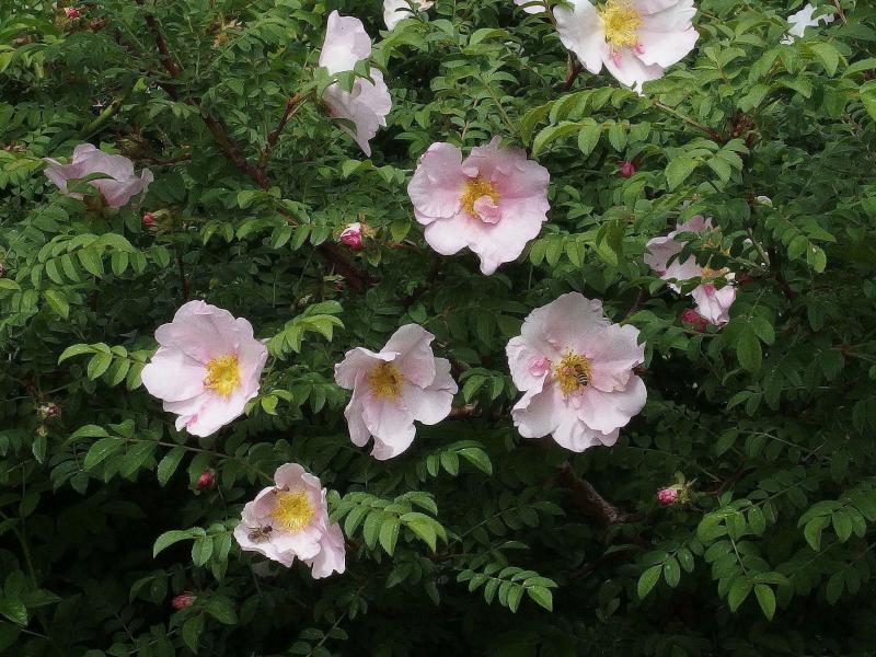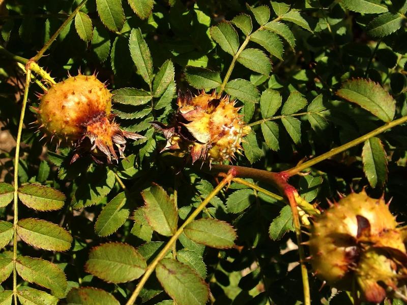 Hier nun ´Haroxa´ , meine Hybride aus R. roxburghii normalis × Schneekoppe (Hybrid Rugosa). https://www.helpmefind.com/rose/l.php?l=2.72468.0&tab=1