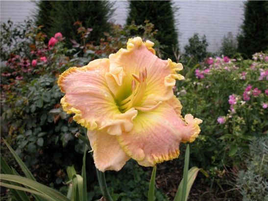 Die dritte Taglilie, die bei mir im Moment noch blüht, ist 'Gentle Shepherd'. Dafür, dass es den ganzen Morgen ununterbrochen geregnet hat, sieht die Blüte hervorragend aus. Nachmittags wird sie dann in der Regel etwas weißer.Liebe GrüßeElke