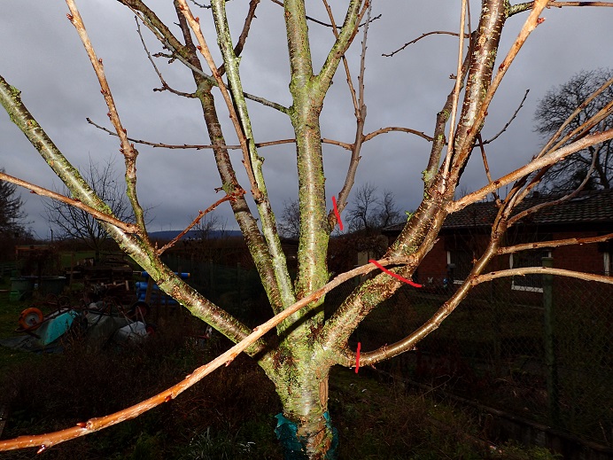 Mein Plan ist, im März die Äste so zu kappen, wie auf dem nachfolgenden Bild rot gekennzeichnet.