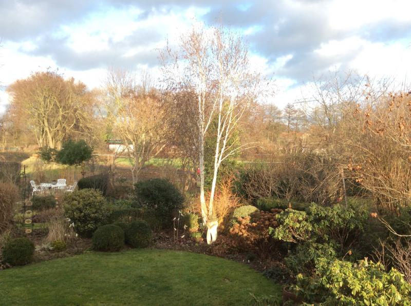 Mein Ausblick aus dem Küchenfenster, d.h. zu fast allen Mahlzeiten. Mit dem Erwachsenwerden der Kinder konnte ich meinen „Bedienplatz“ mit einem Fensterplatz tauschen. ;D