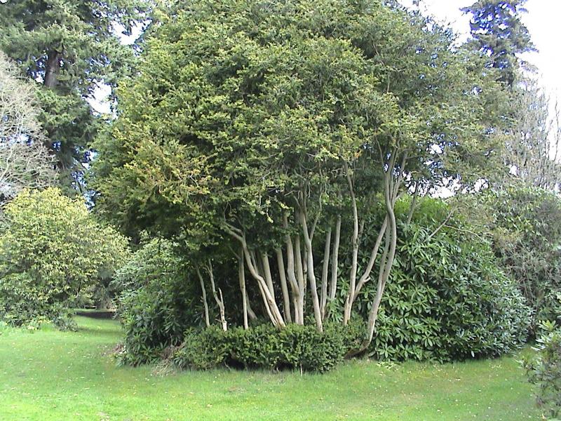 Sie hat ab gut einem Meter drei Stämme, die dann wieder zu einem verwachsen sind. Nach einem weiteren Stück wachsen zwei starke Stämme als Zwiesel, die dann auch wieder verwachsen, um ganz oben viergipflig zu enden.