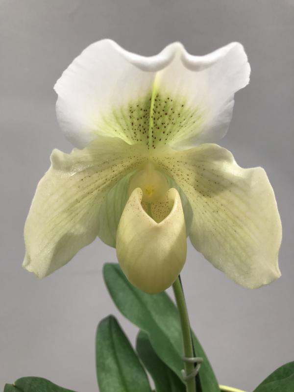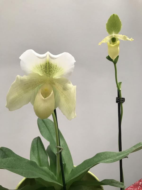 Eine entzückende Naturform, die zu einer besonderen Gruppe der Paphiopedilum gehört, den "Revolverblühern", die zwar mehrblütig sind aber bei denen sich die Blüten eine nach der anderen öffnen.