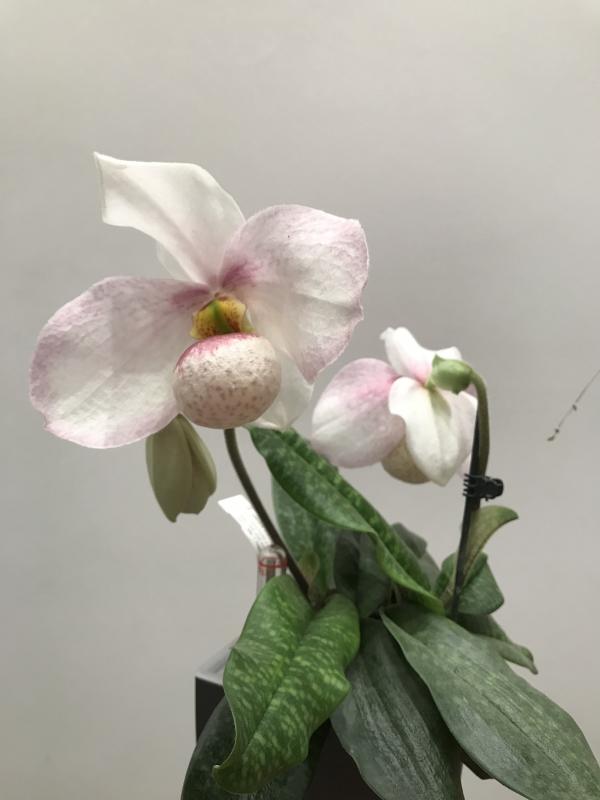 Die zweite Pflanze ist eine Komplex-Hybride, wollte ich schon immer mal ausprobieren aber meist gefallen mir die Farben nicht, diese als "Mrs. White" bezeichnet, ist aber sehr edel und zeigt auch im Blatt deutliche Einflüsse der Brachypetalum Gruppe... also genau mein Beutemuster. ;)