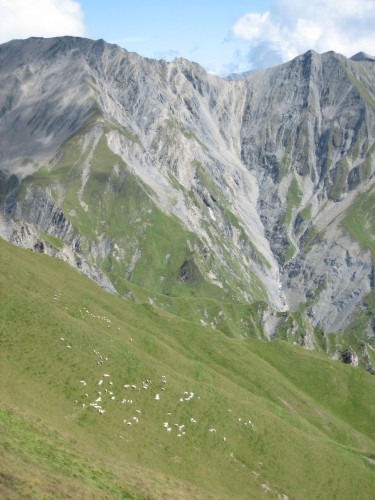 evimeine alpine ausrüstung besteht aus bergschuhen, stöcken + dem was man "angemessene bekleidung" nennt. ein rucksack samt inhalt gehört natürlich auch dazu. aber sonst bin ich nur ein alpiner normalverbraucher.es stimmt, die gegend ist sehr steil, für die hirten besonders bei schlechtwetter ungut.es war eine schöne tour, übers joch in ein anderes tal.