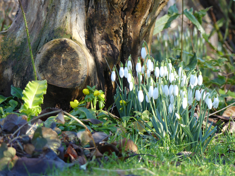 Am 1. Februar entschloss sich meine Zaubernuss, die ersten Blüten zu öffnen, und nun haben sich bereits eine ganze Menge Blüten entfaltet, so dass ich mein stehengelassenes "Alibi-Goldrutenbüschel", was der Ecke ein wenig Struktur verlieh, herunterschneiden kann. Die "weiße Wiese" am Gehölzrand hat im Vergleich zum letzten Jahr recht gut zugelegt, in dieser Ecke scheint es den Schneeglöckchen zu gefallen. :)