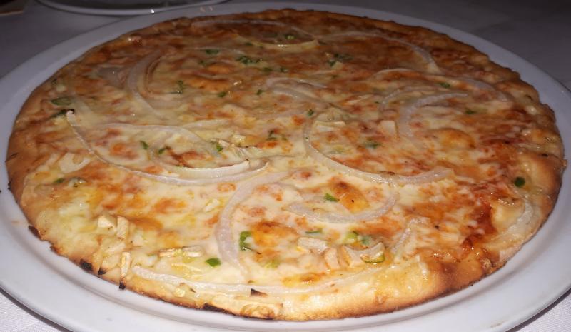 Flammkuchen. Der Teig bestand aus Weizensauerteig, 24 Stunden gereift. War sehr lecker.