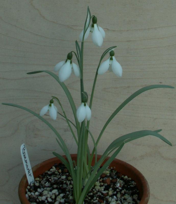 Abingdon Green hat für ein G. elwesii (bzw. -Hybride) einen ausgesprochen ansprechenden Habitus mit dem dezenten Laub und den hoch darüber stehenden, wohlgeformten Blüten.