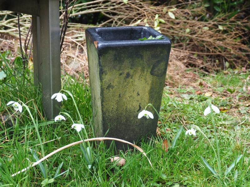 hier bimmelt eine ganze Reihe Galanthus Graetorex 'Dionysus' durch den Garten. Ich hatte den Tuff letztes Jahr aufgenommen und wohl sehr linear verteilt. Was mich dieses Jahr verblüffte.