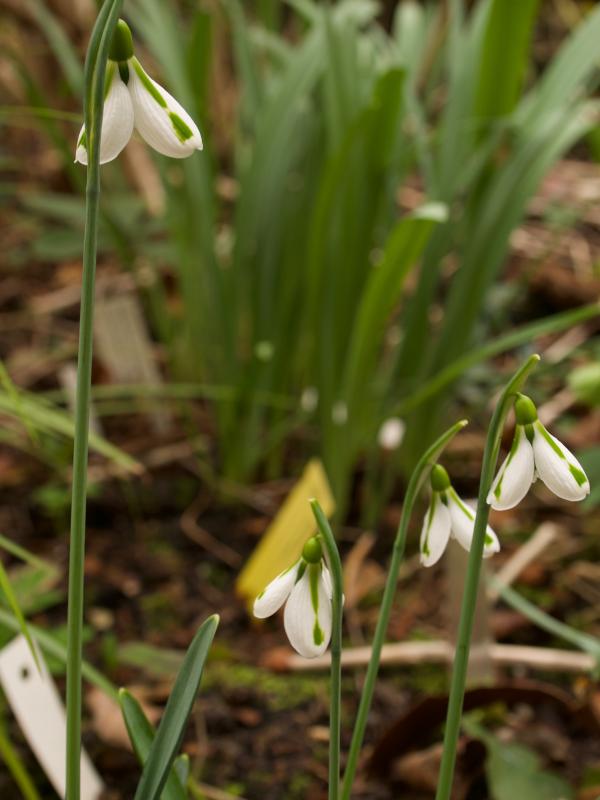 Für mich ist es ein wesentliches Kriterium für die Schönheit eines Schneeglöckchens: dass die Blüten deutlich über dem Laub stehen.