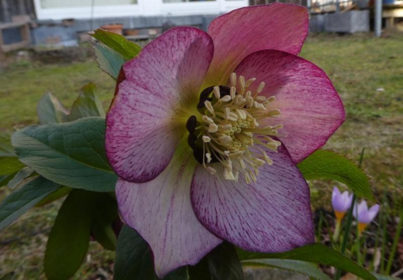 Hier finde ich das Laub viel schöner als die Blüten: Helleborus x ericsmithii 'Winter Moonbeam'