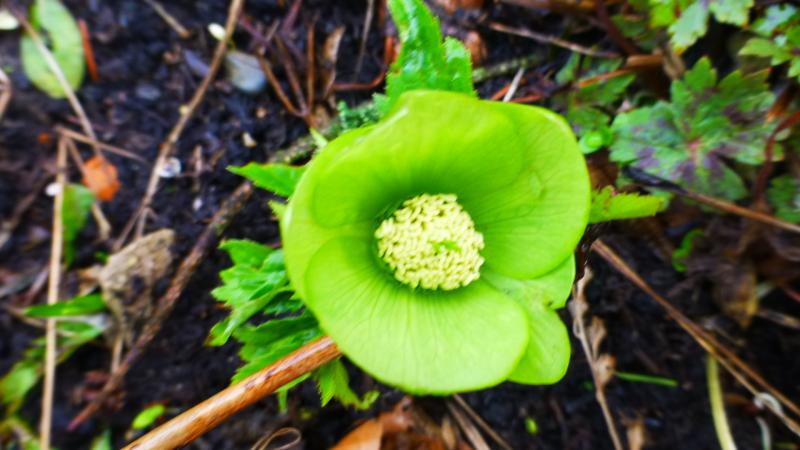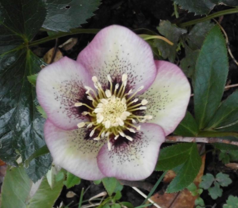 Hier finde ich das Laub viel schöner als die Blüten: Helleborus x ericsmithii 'Winter Moonbeam'