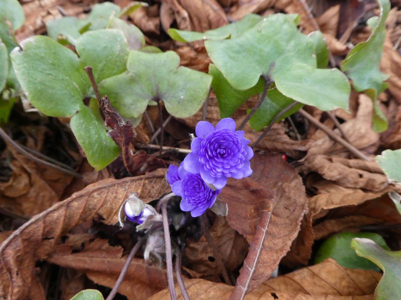 Ein Sämling einer Hepatica nobilis var. japonica fängt gerade an... die scheint sich langsam zwischen den Cypripedium macranthos ausbreiten zu wollen.