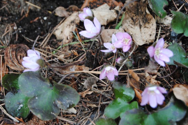 Ein Sämling einer Hepatica nobilis var. japonica fängt gerade an... die scheint sich langsam zwischen den Cypripedium macranthos ausbreiten zu wollen.