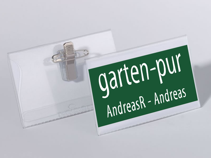 Will jemand so ein Namensschild (hier mal als Fotomontage) mit seinem Namen haben? Zehn Ansteckschilder habe ich hier, vielleicht haben einige von Euch ja auch noch welche (meine sind 90 x 54 mm groß) zu Hause herumliegen. Einleger mit Namen kann ich gerne für jeden drucken, ich bräuchte dann nur eine entsprechende Info per PN, damit ich die Vornamen zuordnen kann. :)