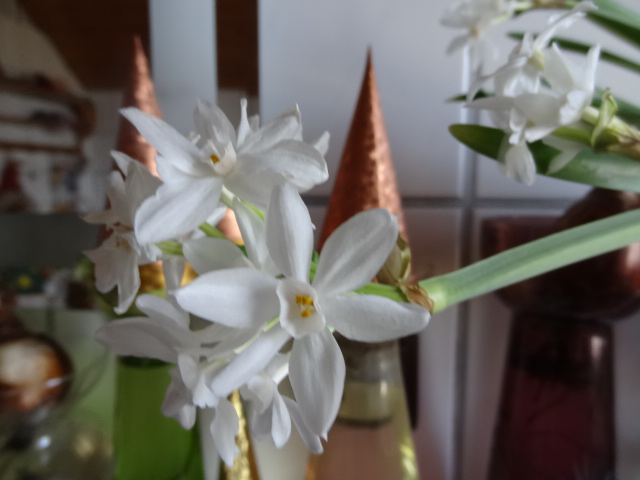 Die Tulbaghia fragrans konnte nicht weiter in der Winterquartier warten. So aus der unbeheizetn Laube in der Küchenfenster gestellt. Jetzt abends erwartet mich ein Wand aus Honigduft wenn ich den Küche betrete. ;)