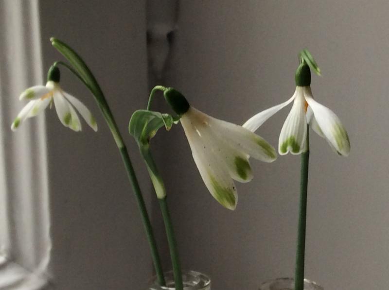 Habe gegoogelt, von der Blüte passt es absolut, bei Hoch ist ein ähnliches Bild von einem Tuff wie meins, die Blütenform und der Gesamteindruck als Gruppe. Vielleicht Lichtmangel, dass er sich so reckt? Hier noch mal im Vergleich ein großblütiges nivalis, eins mit eher kleinerer Blüte und mein Lütter.