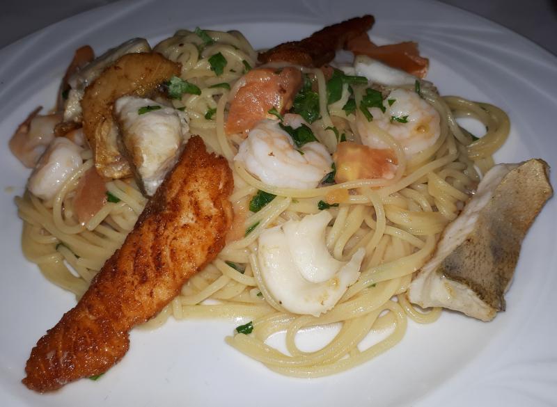 Gestern gab's beim Italiener Spaghetti mit Fisch und Meeresfrüchten