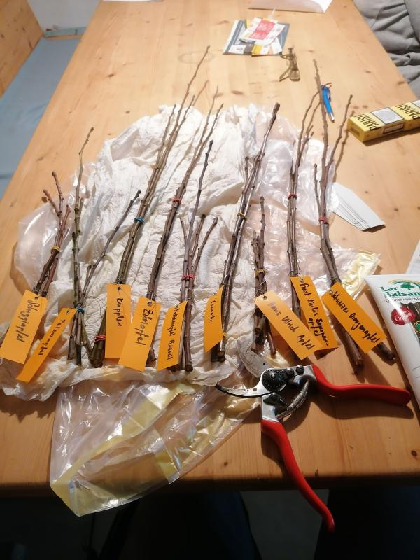 Heute sind Edelreis angekommen, es sind alles Äpfel für das Projekt Obsthecke. Eigentlich wollte ich ja nur 1 Zweig, nun hab ich Edelreis bis zum geht nicht mehr.....