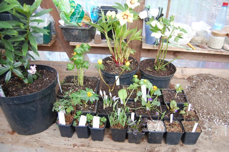 eine gelbe Helleborus ohne Namen und einen Sämling einer lieben Mitpurlerin, den ich auf den Arbeitsnamen "Malva" getauft habe... ;)