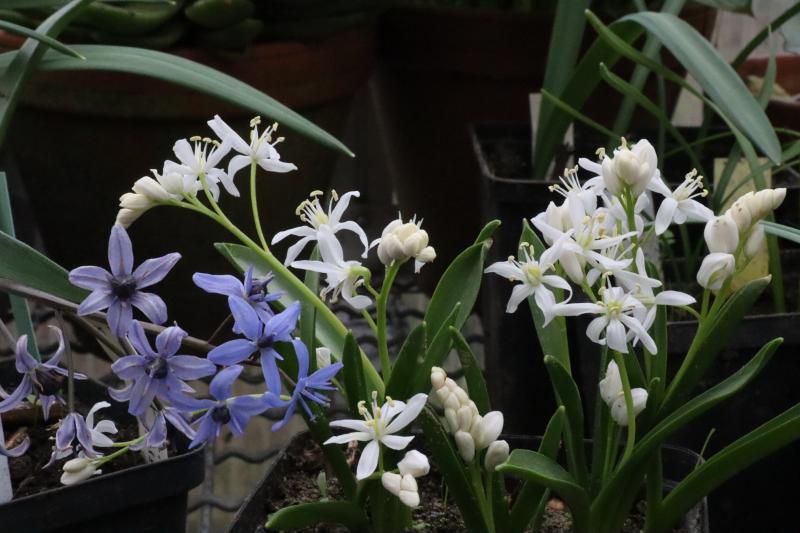 Die reinweiße Scilla bifolia wurde mir als schwachwüchsiger angekündigt - das kann ich wirklich nicht nachvollziehen. Zum Vergleich daneben die var. taurica.