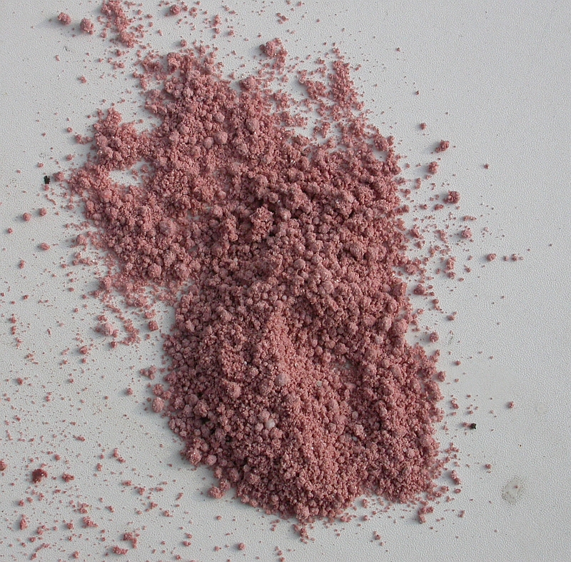 Wir haben ein Sammelsurium von Düngern geerbt. Bei einem Dünger ist die Umverpackung weg, die Plastiktüte aber noch verschlossen. Es handelt sich um rosa Körner, von der Größe her wie Blaukorn, aber eben rosa. Weiß jemand, was das sein könnte?