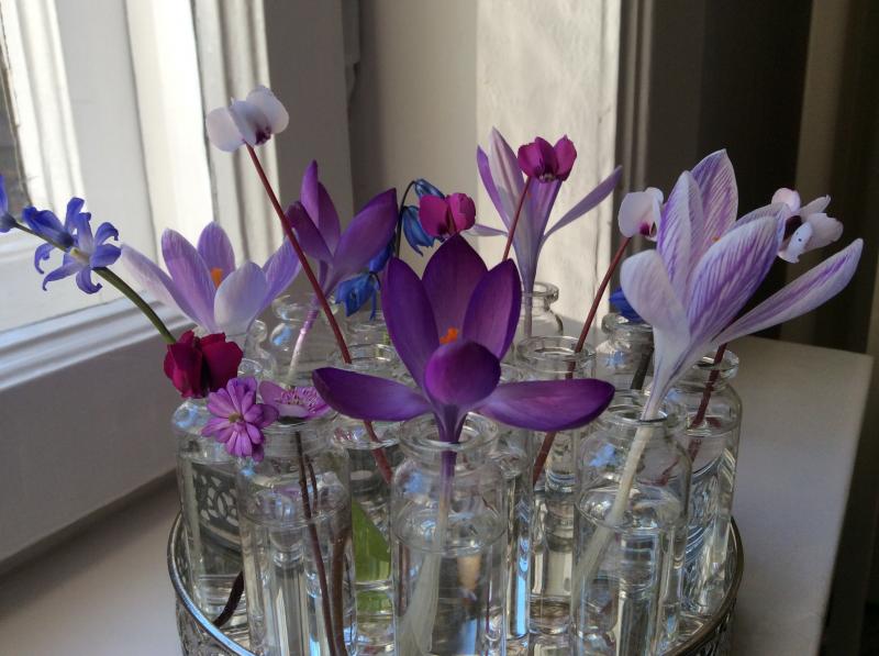 Die zarten Krokusse wie tommasianius und sieberii sind hier großteils im Regen umgefallen und nicht vorzeigbar. Die dicken Crocus vernus sind stabiler und beginnen jetzt mit der Blüte. z.B. 'Jeanne d'Arc'