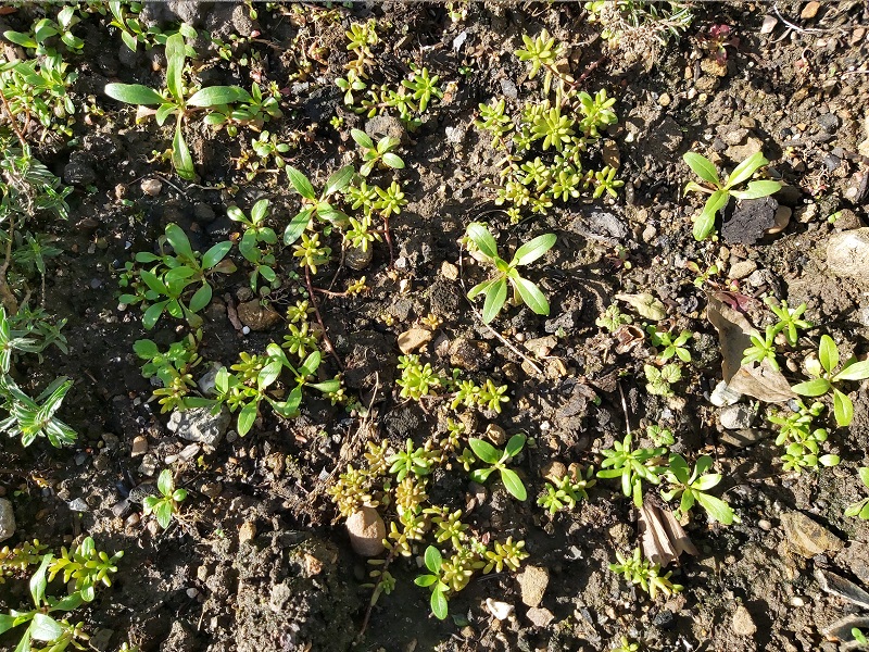 (Ich hatte das früher mal für Acker-Ehrenpreis (Veronica agrestis) gehalten, fälschlich. Die Bestimmung der kleinen, einjährigen Ehrenpreis-Arten ist nicht immer ganz einfach.) Die können sich ziemlich breit machen. Wenn sie zahlreich keimen, ist das Jäten eine schöne Aufgabe. :P