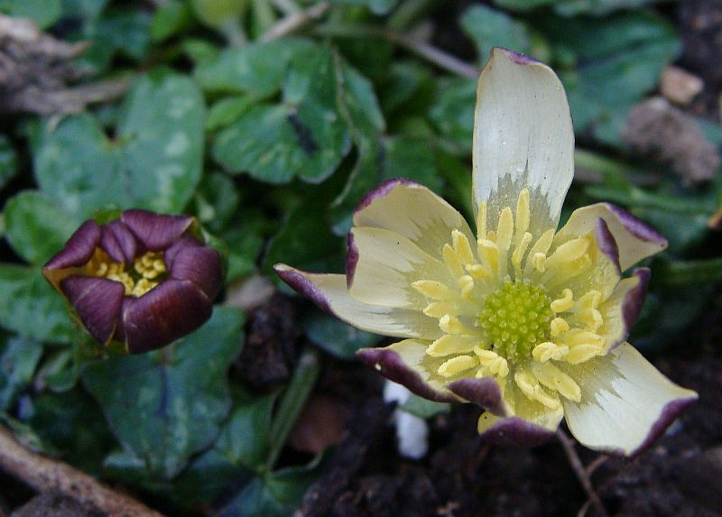 "Brazen Hussy" und "Salmon's White" im Frühlingsbeet - immer wieder werden die Knöllchen versetzt, wenn man etwas verpflanzt..