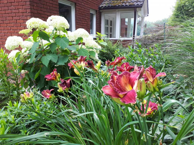 Das Westbeet neben dem Haus ist ein Frühlingsbeet. Es kann sber auch Hochsommer ;D