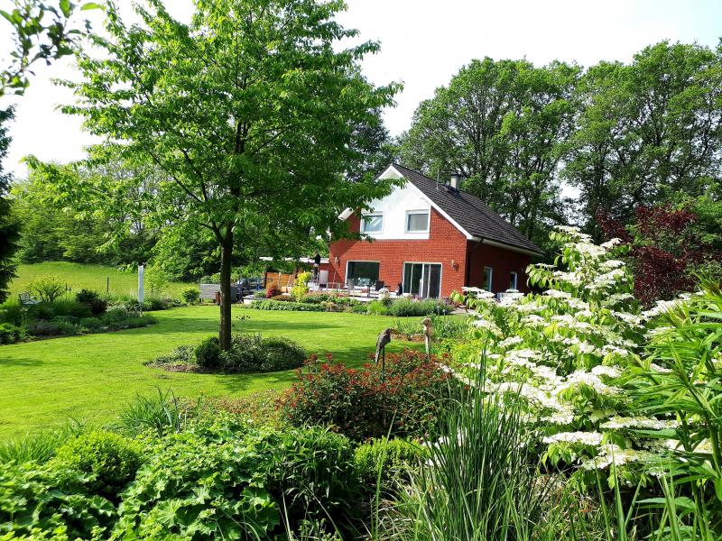 An der Westseite des Hauses steht die Felsenbirne. Diese Pflanzung nennt sich Westbeet.