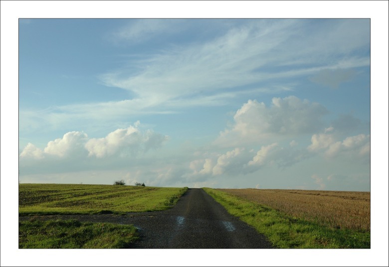 Frank, Feldansichten 1 in #95 ist eines der ruhigen Landschaftsfotos, die ich so liebe! Schöne Bildaufteilung Himmel - Erde, und dann der mittige Weg und die Aufteilung der Felder.Die Herbstzeit-Boten hast du schön ins Bild gesetzt, Friedaveronika!Liebe GrüßeThomas