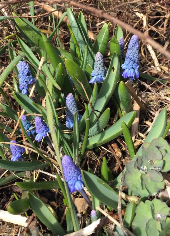 Zunächst getopft hatte ich auch einige Muscari 'Big Smile', die ich im vergangenen Herbst auf dem Wochenmarkt geschenkt bekam. Mit dem kürzeren Laub finde ich diese Sorte recht hübsch. Weiß jemand zufällig, ob sie sich im Beet dann auch unkrautartig vermehren werden wie M. armeniacum? Dann spare ich mir das Auspflanzen.