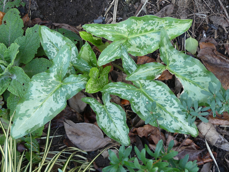 Arum concinnatum 'Aghia Vavara' gefällt der milde Winter offenbar richtig gut, der Zuwachs kann sich sehen lassen.